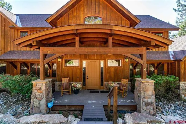 Located on a quiet cul-de-sac in highly desirable Loma Linda, this custom crafted masterpiece sits on 5+ private acres tucked in the pines with huge, expansive views of the East Range of the San Juan Mountains. This timber accented home has a usable floorplan and is perfect for entertaining friends and family as well as offering plenty of space to explore this beautiful part of Southwest Colorado we are fortunate enough to call home. Just near the main entrance, a greatroom with large windows bringing the mountains views inside or one can go outside to enjoy the almost 2,000 square feet of Trex deck with multiple seating areas. The kitchen features top of the line appliances as well as great pantry storage. A large laundry room is conveniently located right off the kitchen area. A mainfloor master bedroom and covered area is admired by many! Lots of custom built-ins and plenty of storage make this home easy to live in. Hardwood floors and timber beams give this home the True Rocky Mountain feel. On the upper floor you will find a wonderful large loft with multiple uses as well as a home office, two guest rooms and two bathrooms. The seller has installed independent heating and air conditioning units. The basement level has been completely finished and adds another appx 2200 square feet; although it has not been permitted at the county. Alterations have been made to the existing septic permitting the home as 5 bedroom/5 bathroom. Seller owns the adjoining lot as well and it is available for purchase to allow for even more space to enjoy. Upscale furnishings (minus a few personal items) are available for purchase.