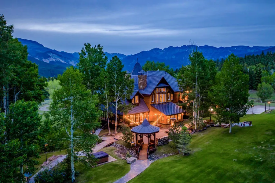 Mountain Bird Ranch is the former home of recording artist Dan Fogelberg who fell in love with the sweeping vistas of this serene, alpine location. Located 35 minutes southeast of downtown Pagosa Springs, this beautiful estate encompasses approximately 610 acres, with an end-of-the-road location in the awe inspiring Blanco Basin. The property sets between an elevation of 8400' and 8900' and is almost entirely surrounded by National Forest. Improvements include a stunning 7568 sq-ft main house, 2994 sq-ft guest house, large indoor riding arena with horse stalls, mechanics shop with attached barn and; a 2000 gallon capacity fuel shed. Terrain on the ranch is gently sloping and covered by groves of aspens, fir spruce forests, scattered stands of gambol oak, lush open meadows and parks, a beautiful lake, and ponds stocked with trout. Seasonal streams support horses, cattle, and a myriad of wildlife species. San Juan National Forest and Wilderness Areas border the ranch on three sides, offering private access and a recreational gateway to one of Colorado's most beautiful mountain areas. Several miles of private roads provide access to most of the property, and the views of the nearby peaks from the ranch roads are simply spectacular. Approximately 6.75 miles of perimeter fencing surround the property, providing an excellent barrier to control livestock. One-quarter mile of new interior fence separates the approximately 490-acre parcel used for grazing from the 120-acre parcel that contains all of the ranch buildings. The enchanting primary residence, custom-built for Dan Fogelberg, has been recently remodeled and updated. The home reflects gracious Old World living, elegant yet cozy and casual. This home is an entertainer's dream and includes a stunning chef's kitchen, two breakfast/lunch nooks, private suites, a formal dining room, multiple sitting areas, and a grand living room with a stacked stone fireplace. Other amenities include a professionally designed recording studio, a workout room, downstairs bar, and a billiard room. Luxurious and intricate woodwork and stained-glass windows throughout the home provide a unique rustic mountain elegance aesthetic. Floors are covered with premium carpet, granite tiles, and solid hickory/oak planking. Cabinetry and trim are custom-made using solid oak. Douglas Fir is used for the overhead beams and interior wainscotting. The exposed beams and posts in the kitchen are solid Missouri red oak. The 2017 Kitchen appliances are Subzero, Wolf, and Kitchen Aid. The kitchen countertops are unique granite with a "leather-like" finish. An antique 18th-century European fire-back is used between the Wolf Range and Vent-a-Hood, adding to the warm ambiance. Interior and exterior doors are all Douglas Fir except for the front entrance, which is Oak. An oversized 3-car garage is attached to the home via an elevated breezeway. Above the garage is a spacious finished office/apartment with bathroom. Beautiful stamped concrete walkways surround the home,