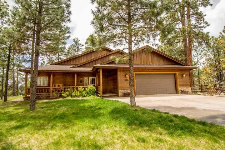 Perfectly tucked in the forest among tall Ponderosa Pines; just enough for shade but yet spread out enough to let that beautiful Colorado sunshine spread throughout the 3 bdrm, 2 bath home and grounds of this 4+ acre master piece built by master builder Jim Iwicki. This cedar-sided, log-accented home has over 1000+ sf of wrap around covered decks. Enjoy your morning coffee on the front porch swing while the deer wake up and graze. Evenings you and your family or guests can enjoy a wonderful barbeque while enjoying the Alpenglow as the sun sets in the San Juans. Stunning great room natural light diffusers, vaulted T&G ceilings, Oak floors and custom painted finishes give the impression of a home twice its size. Beautiful stacked rock fireplace with log hearth, perfect for warming up the cool Colorado nights. Granite counters, Maple Cabinets, high-end light fixtures, Kitchen Island seating...