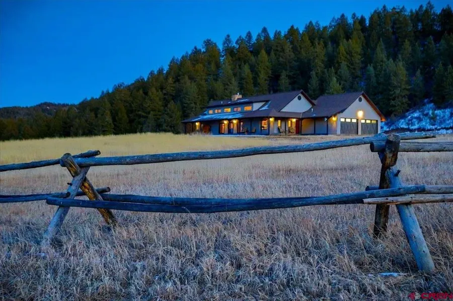 Welcome to 386 Linda Vista, where the endless views of the mountains are magnificent and the setting is so serene! Bordering National Forest, this 109 acre property is an outdoor playground for horseback riding and hiking. There is no HOA and the land has ag tax status. This one-of-a-kind, earth-block construction, ranch-style home was remodeled in 2019/2020. There is a brand new well with a filtration system and 2 cisterns. Stucco and windows are new as well. Coming into the home through the oversized garage, you will enter into a spacious mudroom. Or you can enter the home through the front door, into a hallway with a custom brick arched ceiling and back lighting. Off this hallway, you will find a large office with plenty of natural light and beautiful mountain views out the window. This main level offers an open floor concept with 3 large double sliding doors which allows you to take in the never-ending mountain views from anywhere in this main living area. Expansive wood ceiling beams, in-floor radiant heat, a wood burning fireplace with native rock surround, museum lighting, and custom cabinets built by local craftsman Cappy White, are some of the exceptional features in the living room and dining area. The large chef's kitchen has commercial stainless steel appliances, granite countertops and double ovens. The primary suite on the main level has a beautiful vaulted wood ceiling, plush carpet, sliding glass doors to a private patio, walk-in closet, an ensuite bathroom with Travertine tile flooring, shower, separate sunken tub and mountain views from both the bedroom and bathroom. Downstairs provides ample additional living space. There are 2 guest bedrooms; a flex room which could be used as a media room, workout room, or family room; a bathroom with a large linen closet; a laundry room with a washer, dryer, sink, and a closet storage area with crawl space access; and under the stairs storage. The upper level has a guest bedroom with a built in desk, vaulted ceiling, awesome mountain views, and a large walk-in closet with a window providing those breath-taking views once again! Outside you can enjoy the private setting sitting around the fire pit on the backyard patio, or under the front covered porch taking in the aspen glow during the early evening. This property has plenty of room for your horses. There are 2 pastures for your horses without a single rock in either pasture. The barn has 3 stalls, 1 garage, a tack room, and a bathroom with hook up for a washer and dryer. Near the barn there is a metal siding cabin, complete with heat. There is also an open storage shed, and a large tractor barn with garage doors on each end of the barn, wood siding and windows with mountain views! This ranch property with mountain views like no others, the well-appointed home, large barn and additional amenities is truly one-of-a-kind property!
