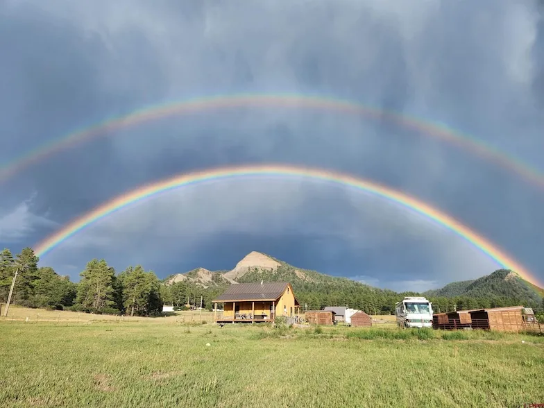 This is quite possibly the best built cabin in all of Pagosa Springs! With spray foam and one inch foam board you are doubly covered and energy efficient which makes it a great lock and leave cabin in the winter! The in floor radiant heating will keep you toasty warm on those really cold winter days! The metal roof is an upgraded standing seam roof! The tall crawlspace is great for storage and would even make an amazing wine cellar! There is an abundance of beautiful blue pine on the exterior and interior of this home! Spend your morning on the front covered deck watching the sun come up and then spend your evening on the back covered deck for spectacular sunsets! The kitchen has granite counters and new appliances! The primary bedroom on the main level has a door that goes out to the deck. It would be a great spot to add a hot tub! There is a full-size washer and dryer in the walk-in primary bedroom closet! If you head up the pull-down ladder you will have a bonus living area that already has a bed in it that conveys and space for an office, craft room or playroom! Outside this amazing cabin you will find two RV hook-ups! One has a 50amp and the other a 30amp and both connect to the septic system! There is a 2000-gallon concrete cistern that is tied into the house. There is a covered RV, boat or vehicle storage on the property! There are also many outbuildings, one is a workshop/storage area, one houses the filtration system for the well, another has a refrigerator and space for a bar, and others could be used for horse turnouts. This property borders green space and is close to a natural spring where you can watch animals like deer and elk come to drink! One of the most incredible things about the location of this property is that is a short walk to a brand-new playground, covered ramada, a basketball court and two brand new pickleball courts! Homeowner's insurance is a breeze because there are no trees on the property, and you won't have to spend your spare time raking pine needles and picking up pinecones! 360 views and a close of view of Broke Off Mountain are there for you to enjoy! There isn't a HOA in this subdivision. The 5G cell service is a much-added bonus! There is just so much to see here! Additional 1.07 adjoining acreage available for a separate price. Schedule your showing today! Some photos of this listing may include virtually staged amenities, furniture or fixtures.