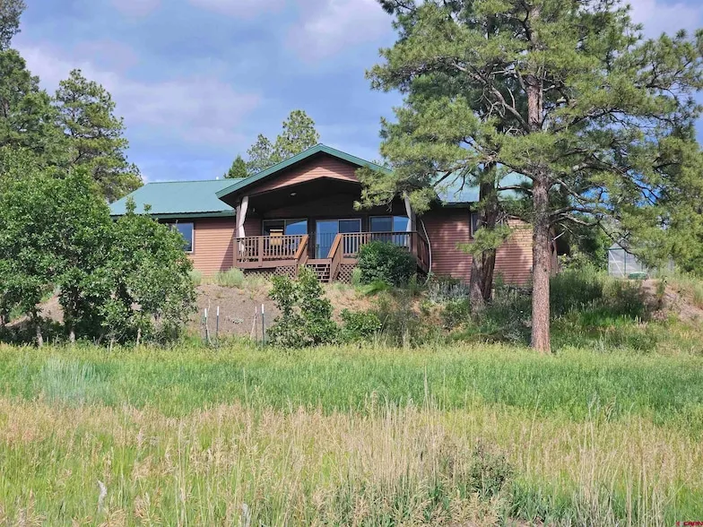 Immaculate single-level mountain retreat on 5 private, treed acres ideal for second homeowners or those seeking an easy lock-and-leave property. This well-maintained 2-bedroom, 2-bath home offers effortless living with a spacious, open layout and modern finishes throughout. The gourmet kitchen features high-end stainless steel appliances, granite countertops, and custom tilework, creating a comfortable and functional space for everyday use or weekend getaways. Enjoy exceptional outdoor living with expansive covered porches perfect for relaxing, dining, or taking in the peaceful evening sunsets. A private hot tub adds to the retreat-like atmosphere. The fenced yard offers convenience for pet owners, while the one-car garage provides secure storage for a vehicle, tools, or recreational gear. Located just minutes from a paved road, this property offers the privacy of rural living with the benefit of easy year-round access. Whether used as a primary residence or a low-maintenance second home, this turn-key property delivers comfort, convenience, and true Colorado mountain charm. A rare opportunity for acreage, privacy, and simplicity Best value in this sought-after neighborhood on acreage. Schedule your showing today.