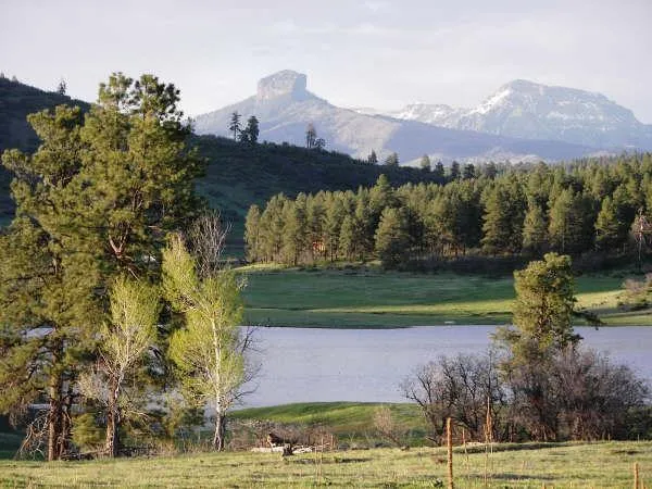 43 ACRES - LAKE FRONT & HORSE PROPERTY that borders a trout fishing lake (40+ Acre) along with 26 IRRIGATED ACRES. Custom built log home - excellent condition. There are 3 bed, 2 baths, Large master suite, double vanities & Jacuzzi tub a great office/loft overlooking family dining and kitchen, gas fireplace. Open floor plan with lots of light, windows, hard wood floors and much more!!. 774 sq. ft. of wrap around patio / decking which creates a perfect observatory for wildlife, evening sunsets along with dramatic views of the lake and lush meadow. Horse barn and stables w/ storage. Property is currently hayed and utilized for pasture grazing. Property is extremely private, heavily wooded, and arms length to National Forest border and access. SELLING BELOW REPLACEMENT COST!
