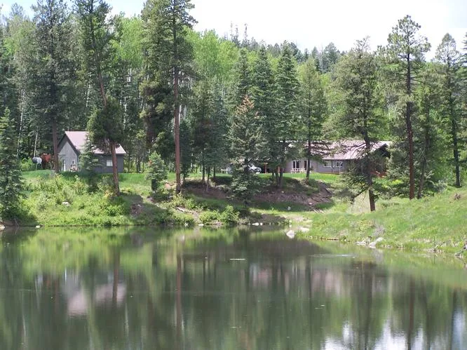 Surrounded by National Forest, this spectacular 60 acres of private deeded land includes 7,000 sq. ft. of Lodge and Cabins sitting on the bank of a beautiful "High Country" Lake.