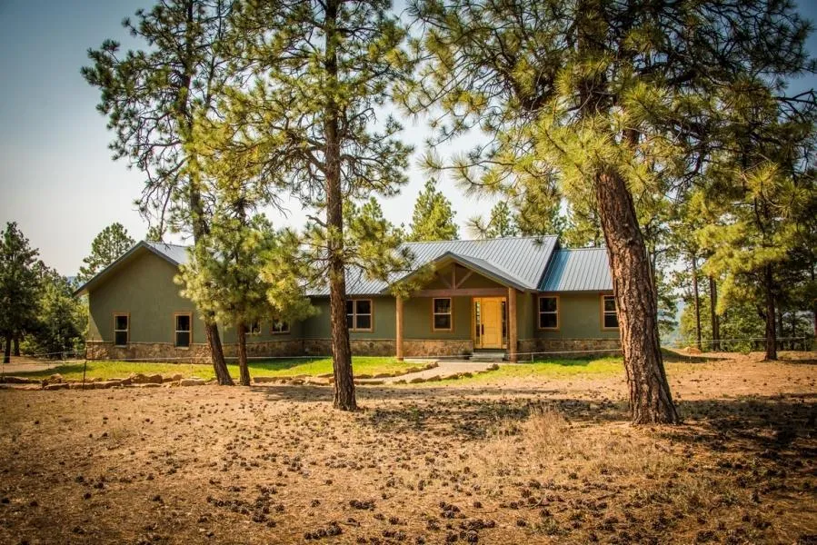Avid outdoorsman's property with room for the toys. This 2,270 square foot, 3-bedroom, 2.5 bath, 2 car garage home, and a 1,960 square foot metal building situated on 35 park-like acres with a small pond and quick access to the San Juan National Forest. The home boasts and open living floor plan, cathedral ceilings, abundant windows, a native-stone masonry wood-burning fireplace, wood-look ceramic tile floors in the living area and rough-sawn wood plank floors in the bedrooms, with hewn log post and beams and alder trim. The kitchen is bedecked with granite counter tops, alder cabinets, stainless appliances, a gas range, and a spacious island with bar seating for 4 or more. The patio doors open up to a covered flagstone patio with a hot tub, privacy, and amazing sunsets. The over-sized attached 2-car garage is finished and heated. The home's low-maintenance exterior is built to hold up t...