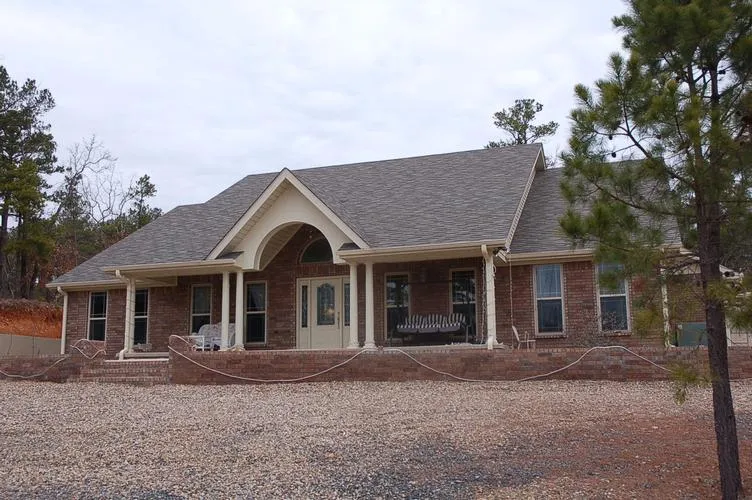 Safe room: bolted to the floor, and 4x4 decking on outside, w/24 anchor bolts. Barn nails in tresses, 3/4 plywood in closet. 2x12 in ceiling under trusses, not attached to house. Reg. door and 2 pc. plywood. 3-2x4's in the corner-latch. Built in kitchen desk/computer area. Kitchen has lots of deep drawers. Pantry has rolling shelves, corner lazy susan. Kitchen has stained glass lamps. Large dining area opens to great room.. Front door has leaded glass and side panels. Structure is totally wrapped in plywood and decking, including interior walls, living area has floor plug, canned lights. Sitting room off MBR. Vehicles can drive to the back of the house. Retaining wall is anchored into the concrete with re-bar. Exterior trim is concrete board. Exterior plug ins and plugs for Christmas lights.