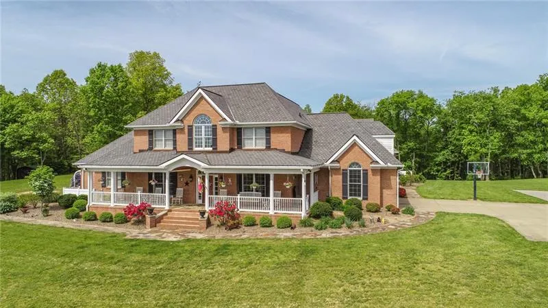 Come LIVE LUCKY on HORSESHOE Dr at This South Buffalo Twp Opportunity - 5 bed 4.3 bath Brick Estate on 39 Acres. Main level has living room w/stone fireplace, dining room, kitchen w/ granite countertop, Wolf Gas Stove, Subzero fridge, butler's pantry, morning room, office, laundry rm and master suite w/ 2 walk-in closets & full bath. Upper level has 3 bedrooms including 2nd master w/ full bath, walk-in closet & jack & jill bath. Lower level has a game rm w/ billiards, family rm, bar, gym, theatre, safe rm & full bath. Backyard includes inground pool, hot tub, pool house, bar, tv, refrigerator, dishwasher & powder rm. Built-in grill, fire pit, putting green/sand trap, horseshoe pit, fenced raised garden beds & playhouse. 3-stall detached garage (50x80 - 10 cars) includes workshop, bar, billiards & fits an RV. Home equipped w/ Crestron entertainment/security system, hardwood floors, elevator for handicap accessibility & radiant heat on main level. Hiking trails around the property.