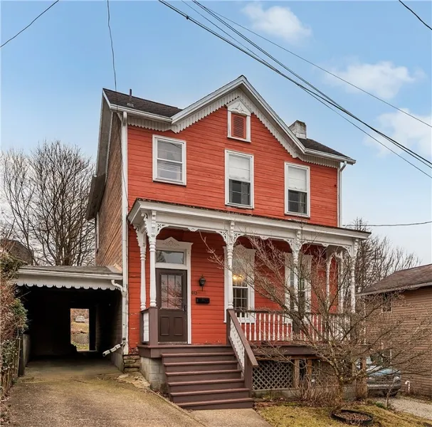 This warm & inviting 2-story charmer in Apollo offers all the space & comfort you crave. Step inside & be greeted by grand living & dining rooms, where 10 ft beamed ceilings & fireplaces create an inviting warmth. The main floor also has an eat-in kitchen, laundry room, a full bath with a walk-in shower, and a flexible bonus room. Upstairs, discover 3-4 bedrooms (4th bedroom is captive)and a 2nd full bath. Create bedrooms, a home office, or a nursery to fit your needs! The partially finished walk out basement has potential for a wood-burning stove. Unwind outside on the patio or in the fenced backyard, perfect for barbecues and fun. Parking worries are gone with covered parking and extra off-street space. Own a piece of Apollo's history! Appliances included.