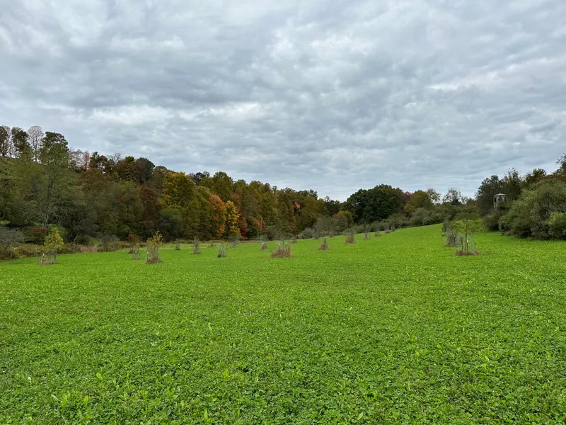From the minute I stepped foot on this property, I knew immediately it was one of the best managed hunting properties I have been on in years. From start to finish, every detail has been accounted for in the layout and management of this property. Highly regarded Whitetail Land Consultant Don Higgins originally helped design and layout this farm, and since then the owners with the help of another land consulting company have managed and maintained this property, turning it into an absolute whitetail Mecca. The property features roughly 17 acres of food plots which consist of corn, brassicas, rye, and clovers. It currently has 5 elevated hunting blinds that have been strategically placed with access and wind directions in mind to help maximize the hunters shot opportunities. The owner has done extensive habitat work on the property creating multiple sanctuary bedding areas. As you traverse the property you will find acres of miscanthus grass planted to create seclusion and privacy screening for the food plots. And to top it all off the farm features a newly planted 40 tree producing orchard that has pear, apple, persimmon, and chestnut surrounded by gorgeous clover. If you are looking for a top notch hunting farm in the heart of big buck country this is the one. There is still time to acquire this property and hunt it this year. Call today to setup a showing with Land Specialist