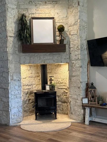 Come make this dream home yours! Home and shop sit on 2.625 acres. Secluded with amazing views of the sunrises and sunsets. Entire home has 10 foot ceilings. 4 bedroom 2 bath with sliding door to large covered back patio and half bath. Kitchen is large, with an island and butlers pantry. Living room has a wood burning fireplace with rock surround. An almost 11x12 safe room and oversized garage. 30x80 shop with living area and bath. Had a sidewalk to a concrete patio with 2 full time RV hookups. House is about a mile from merus adventure park, so there is potential for added income by renting RV spots out. There are 3 covered patios under the roof of house, backyard is 13x40 covered with built in propane for grills, and has additional added patio with firepit and hot tub is negotiable.