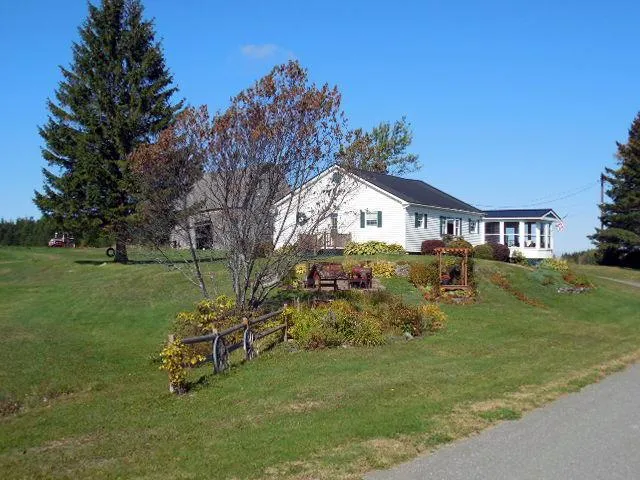 Charming 2BR 1BA Ranch Home with detached 2 car garage on 159 Acre Farm. Also included are the original homestead and original three-story barn and all the magnificent views of the beautiful countryside found in rural Maine. This one-story home features a galley kitchen; large living room; spacious laundry room; family room with propane stove and hearth; Master bedroom with hardwood floors and overhead storage; adorable, enclosed entry porch; glassed-in, half-round sun porch taking full advantage of all the glorious views; and meticulously landscaped yard and flower gardens!!!