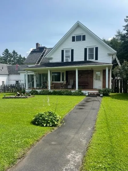 Beautiful farmhouse on .65 of an acre in rural Maine. Farmhouse has 1 floor living on main level with 1 bedroom, 1 bathroom. Enclosed side front porch and a open front porch for watching the sunset. 2nd floor has 2 bedrooms/1 full bath its own kitchen & family room. 2nd floor could be rental income or use home as a single residence. New roof 2023, multi heat sources, private back porch. Garage is insulated with one side as a 22x30 workshop/garage and other half animal shelter with multi stalls and 18x22 chicken coop. Back yard has space for all the small critters to roam and or a huge garden. A insulated 16x22 grow house is also on the property. Tons of storage in the home and above the garage. Room to start a small business or your own mini farm. Recreational trails easily accessible.