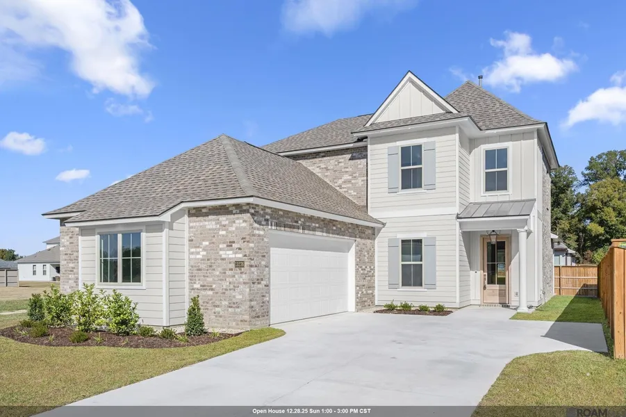 Move-in ready Vacherie A by Level Homes in Belle Savanne — offering 5 bedrooms, 4.5 baths, a spacious loft + flex room, all located in a highly sought-after top school district. This two-story layout is designed for space, flow, and functionality, giving plenty of room for a large or growing household without wasted square footage. Step inside from the welcoming front porch with a gas lantern into a foyer that opens to the formal dining room and then to the open living, kitchen, and breakfast area. The living room centers around a ventless gas fireplace with stone surround, with the option to add custom built-ins for added style and storage. The gourmet kitchen features custom painted cabinetry with extended uppers and under-cabinet lighting, a large island with pendant lighting, 3cm Carrara Breve quartz countertops, subway tile backsplash, pot filler, stainless steel appliances including 36" gas cooktop, wall oven, microwave, and a walk-in pantry. The primary suite is downstairs, complete with a spa-style bath offering dual sinks, quartz counters, custom framed mirrors, soaking tub, tiled shower with seamless glass door, and a huge walk-in closet. A second bedroom with its own full bath is also located on the main level — ideal for guests or multigenerational living. A spacious laundry room, half bath, and mudroom round out the first floor. Upstairs you’ll find three additional bedrooms — all with walk-in closets — plus a large loft and separate flex/office space, perfect for a media room, play area, study, or workout zone. Professionally landscaped and fully sodded yard. Belle Savanne offers multiple neighborhood lakes, greenspace, and a community pool with Cabana. Other lots and floorplans available.