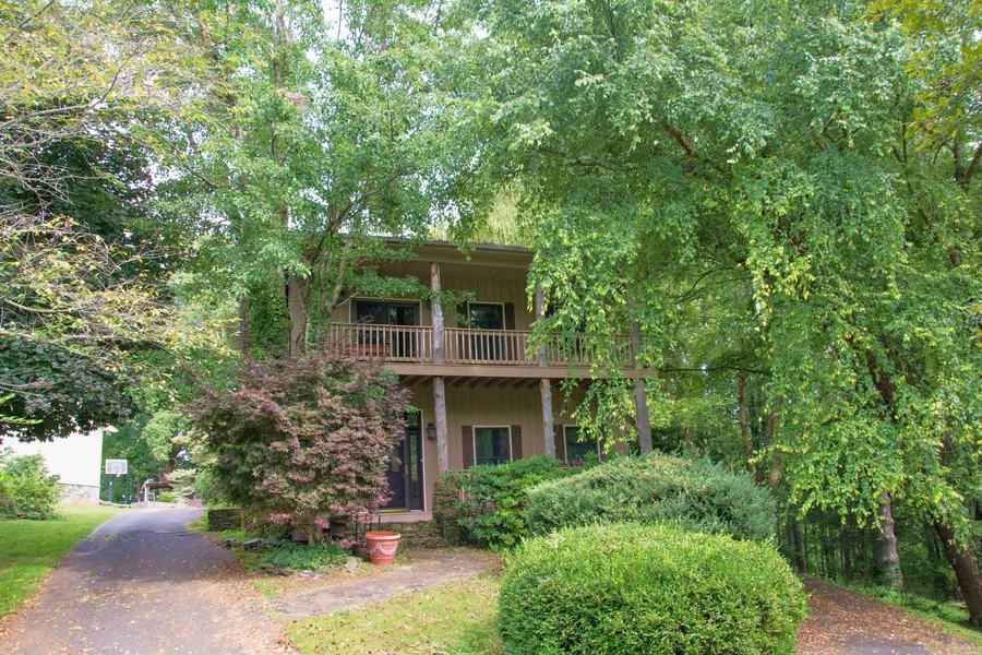 A PLACE WITH SPACE - INSIDE & OUT! This family-sized home w/ 4957 square feet of living space is situated on top of the mountain and offers 18 acres, complete privacy, plenty of yard for kids and/or pets, lots of room for gardening, woodlands for exploring and/or hunting, bold stream, small goldfish pond, 1800 sq ft detached heated 3-car garage, 450 sq. ft. metal building for equipment storage and another shed with 2 garage bays. Main level of home offers spacious kitchen w/ granite counter tops, apron sink, island, gas range, open to casual dining area w/ tile floor and woodstove; family room w/ barn wood accents, stone fireplace & wet bar; formal dining room; 3 bedrooms (one w/ deck access & private bath), 2 baths & sunroom; upper level is master retreat w/ large bedroom featuring stone fireplace & private balcony, sizable closet/dressing room, 2 separate bathrooms, lots of attic stora...