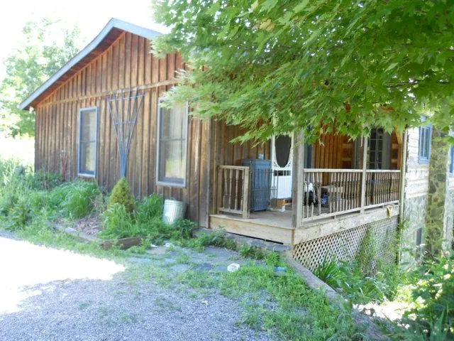SOUTHERN ASHE: Cozy and private log and frame home sitting on 13.02 secluded acres. This home offers wood floors, wood burning fireplace, flu in the kitchen for a wood cook stove if desired, a fully finished lower level including a large game room. Theres also two covered porches to enjoy the privacy. Additionally, there is a barn on the property with water connections and electricity. There is also a shop with efficiency apartment overhead