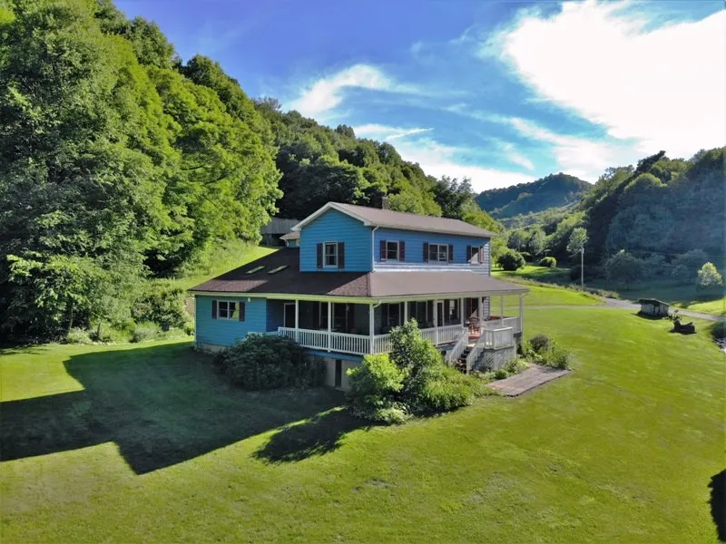 NATURE LOVERS PARADISE IN N.C. MOUNTAINS NEAR LANSING . Custom 2,700 sf home w/grounds, views and streams; open floor plan; hardwood floors; 10 ceilings; two-sided gas log fireplace separates dining and 23x15 living room; 3 lrg. bed/sitting rooms including one downstairs; 2 up including master 23x15 with gas log fireplace; 16x20 kitchen with 15 sloped ceiling and skylights; 2 large bathrooms, one accessible with solid brass fixtures; AC and 6 ceiling fans; great storage; exterior cedar siding; mature perennial landscaping and unique bog garden; fruit trees, mature blueberry bushes; 752 sf balcony, deck, and covered porches w/swing; wildlife abounds in tranquil setting on 53.3 acres of pastures w/barns, woods, some with marketable timber; on state maintained road which follows one of best trout creeks in county; Near Grayson Highlands State. Park
