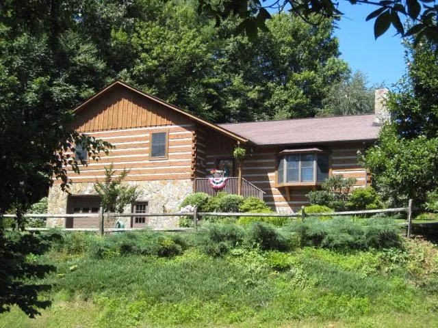 JUST OUT OF TOWN -Enjoy your end of the road privacy in this beautiful hand hewn log cabin. The inside features a large open kitchen/living area floor plan, ceramic tile or wood floors and a real wood fireplace with insert to keep you warm. The yard has many nice plantings with a large open area. There is also an outbuilding and workshop separate from the home.