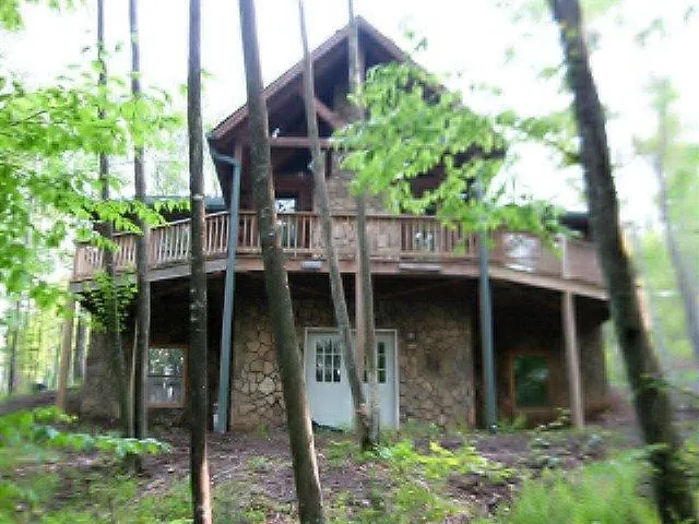 GLENDALE SPRINGS: Like new log home in a beautiful wooded , private setting. This beautiful log home has barely been lived in. It features a stone fireplace (gas log) Oak hardwood floors throughout except in bathrooms. The home also features vaulted ceilings, recessed lighting , covered porch and deck and a full unfinished basement that provides endless possibilities. This home is located only one half mile from the New Blue Ridge Dinner Theater, Mt. Aire Seafood & Steak House and about one mile to the Blue Ridge Parkway.