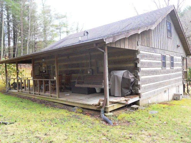 LOG CABIN NEAR THE NEW RIVER: ADORABLE LOG HOME WITH TWO COVERED PORCHES , WOOD BURNING FIREPLACE , EXPOSED BEAMS , WOOD FLOORS AND MORE. YOU CAN WALK TO THE NEW RIVER CARRYING A CANOE, TUBE OR FISHING GEAR, ALSO A WONDERFUL PLACE TO RIDE BICYCLES BESIDE THE RIVER. THERE ARE TWO BEDROOMS AND A LOFT AREA WITH ONE FULL BATH . THE COVERED BACK PORCH IS WONDERFUL FOR PRIVACY AND ENTERTAINING YOUR FRIENDS AND FAMILY. THIS COULD BE YOUR LOG CABIN MOUNTAIN ESCAPE NEAR THE RIVER. MUST SEE!