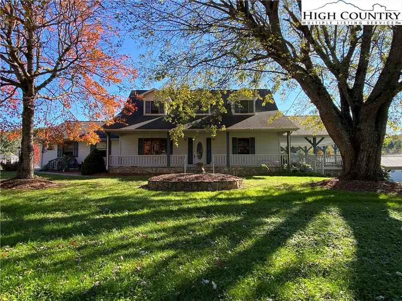 Just off of Railroad Grade: Large family sized home in great community with a great yard for children or pets. This 3 bedrooms, 2 bath Cape Cod with full unfinished basement is well suited to the growing family or a family that just enjoys spacious rooms with lots of closet space. The custom kitchen features custom oak cabinetry with ceramic tile floors. The large living room offers hardwood floors with bay windows and custom blinds. Main floor master bedroom, full bath and laundry make this an excellent home for those who prefer no steps. However, there are 2 really large bedrooms and a nice bath on the second level. The home has lots of storage space inside the home and in detached garages. The homes unfinished drive- in basement is great for storage and the home features a floored attic with pull down and there is a 2- car attached garage. For the car enthusiast or wood worker, there is a great 3 car garage as well as a nice separate shop area with an office. The 1.381 acres is very well kept, lays well & nicely landscaped and if you enjoy the outdoors, there are two large covered rocking porches. This home is only 8.5 miles to West Jefferson and a quick drive to Boone . Must see this home today