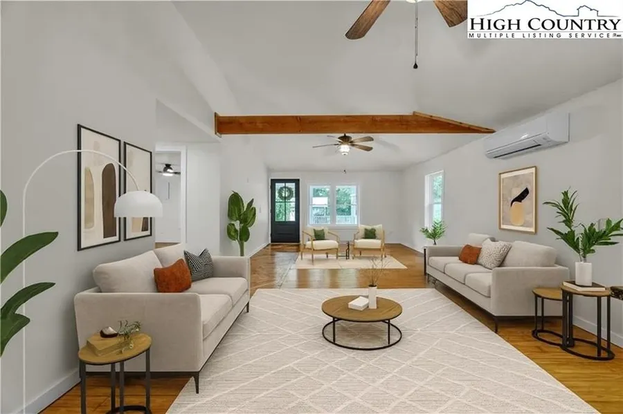 This newly renovated home in the heart of West Jefferson offers the perfect blend of modern comfort and mountain charm. Sitting on two lots with a private backyard and peaceful woodline, this property provides both space and seclusion. The main floor features an open-concept design with vaulted ceilings and stunning wooden beam details that create a warm, inviting atmosphere. The kitchen is a chef's dream with custom granite countertops, soft-close cabinetry, abundant storage, and stainless steel appliances. The spacious master suite includes a walk-in closet and multiple windows for natural light, while the luxurious master bath impresses with a custom tile shower, double granite vanity, water closet, and extra storage. Also on the main level are an additional bedroom, full bath, office, and convenient laundry area. French doors lead to an open back deck, perfect for entertaining or relaxing outdoors. Upstairs, you'll find another bedroom, a full bathroom, and a versatile flex space - that could be used as an additional bedroom, if so desired.