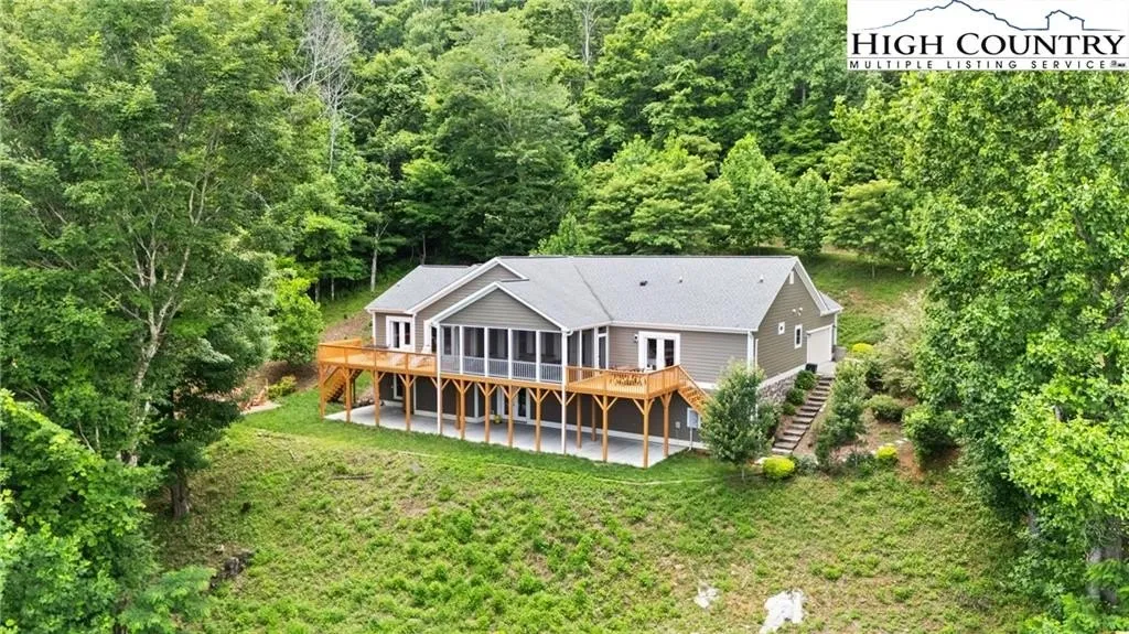 Experience serene mountain living with this stunning custom-built home in the gated Great Sky community, centrally located between the two great towns of Boone and West Jefferson. Crafted in 2014, this single-level masterpiece spans over 2,680 sq ft on an expansive 1.47 acres, offering long-range, layered Blue Ridge Mountain views that take your breath away. The open floorplan is the heart of the home. The living room, with its stone gas fireplace and the chef’s kitchen featuring a granite-topped island, flow seamlessly onto a covered, screened deck, perfect for lounging or entertaining while soaking in panoramic vistas. The home features a split-bedroom layout: The ensuite primary suite boasts a spa-like bath with a standalone tub, custom walk-in closet, and direct access to the deck and incredible views. Opposite, a guest suite with its own deck and two additional bedrooms, including a...