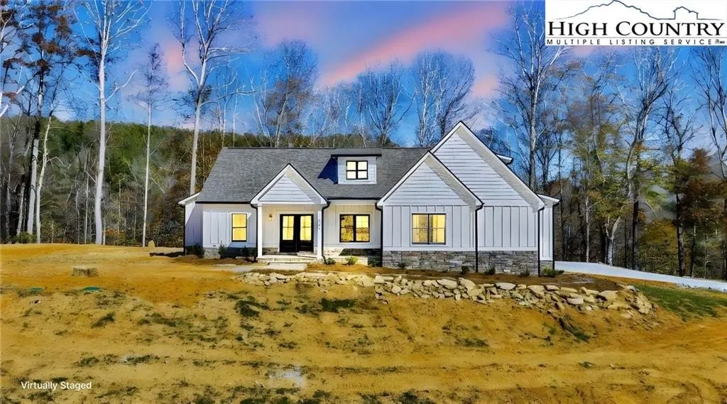 Nestled within the upscale gated community of Whispering River, this beautiful, newly constructed home boasts an acre plus lot with gorgeous New River access! The main floor features three generously sized bedrooms, including two with a shared full bath. The open floor plan creates a seamless transition between the family room, dining area, and kitchen, which showcases a spacious island, granite countertops, and premium appliances. A skillfully crafted master suite, complete with an expansive custom designed closet, vast tile shower, and an opulent soaking tub, complete the main floor. The upper level boasts a spacious bonus room and a third full bath, situated above the oversized attached double garage. This exceptional residence features an array of luxurious appointments, including Belgium wood flooring, granite counters throughout, covered porches (trex back deck), a condition sealed crawlspace with an Aprilaire dehumidifier, rolling mountain views and New River access. Come see this amazing mountain haven today!