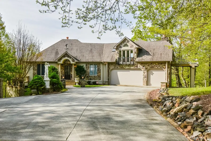 Just off the Blue Ridge Parkway, this open concept 2-bedroom 3-bath, French Country style home situated on 16 + acres offers privacy & beautiful long range views. High end finishes & an abundance of windows greet you as you enter the home. Teak floors, stone wood-burning fireplace & 2-story ceiling add timeless appeal to the great room. The large deck features & an outdoor wood burning fireplace for anytime ambiance or warmth. The kitchen features granite counters & stainless appliances. The main level master bath features a jetted tub w/ rain shower head & large windows to capture the views. A guest bedroom & additional full bath complete the main level. The upper level game room w/propane fireplace & full bath offers a private deck, skylights & a wall of windows to frame the gorgeous views. A 3rd level loft area is currently used as additional sleeping space & sitting area. The attached 3-car garage offers plenty of parking & storage. The 4-car detached garage has a 1-bath apartment above which provides a private space for guests & features, wood floors, walnut cabinets & granite counters.