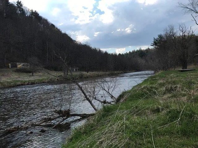 Large 3 Acre Plus Riverfront lot at the end of the Woods on the New. 2 building sites that sit up high above the river, with some select tree cutting you would have year round river views. Small portion of the property goes across the main road, where there is a possible building site above the road. Private location at the end of the road. Nice Riverfront community, located about 10 minutes outside of Jefferson.