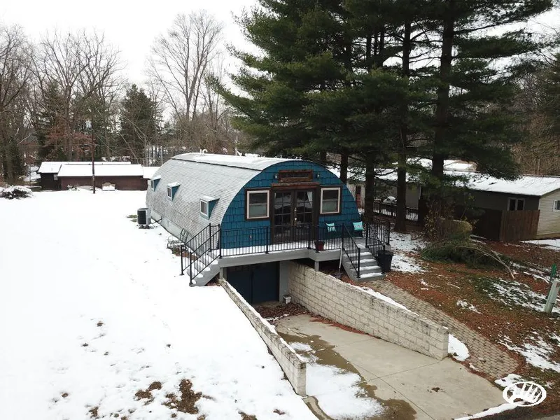 UNIQUE describes this fully renovated authentic military Quonset hut, remodeled into a beautiful home in a peaceful, private lakeside community. The home features hardwood flooring throughout, vaulted tin tile ceilings, and shiplap style tongue and groove wood walls. A full basement with brand new concrete has a lot of potential for finishing and making your own. Central air/ heat with new efficient electric heat pump and new water softener system. The current owner's spared no expense when remodeling this gorgeous home! If you like to hunt or fish this property is located in an ideal location with hundreds of public hunting and Charles Mill Lake just steps away. This property could also be a potential investment property perfect for short term or long term renting! You do not want to miss out on this property!