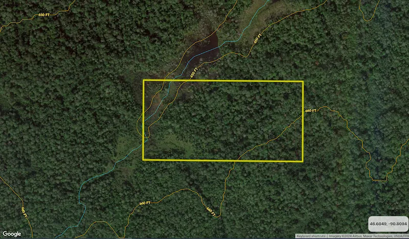 This beautiful piece of hunting land is very nicely timbered and located nearby Ashland and Lake Superiors Chequamegon Bay. The property is bordered on two sides by private property and two sides by USA Trust Land. Access is limited and the taxes are very low. For more information, please call Land Specialist Mike Noskoviak