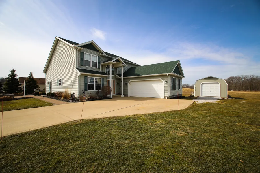 This beautiful Colonial home is located on 2 acres in the Heart of Wine Country. Enjoy 4 bedrooms 2 full and one half bathrooms. You will love the grand entry way that leads to a huge great room with vaulted ceilings and fireplace. The formal dining is great for entertaining for all those family gatherings or just getting together with friends. The fabulous kitchen has new granite counter tops (2018), tile & glass back-splash and under the cabinet lighting. It is open to the dining room and also to the dine-in area that is open to the great room. All flooring on the main level has gorgeous laminate flooring or ceramic tile. Master Suite is on the main level w/custom master bath which has dual sinks, custom walk-in shower with ceramic tile. The 3 other bedrooms are located on the 2nd level w/full bath. All bedrooms have plenty of closet space, also on the 2nd level is a versatile loft area that can be used for any of your needs. Other updates and features are: Roof only 2 years old (2017), newer custom brick path patio with fire-pit (2014), 1st floor laundry room, attached 2 car garage, 24x14 outbuilding that is big enough for a small car, atv, motorcycles etc. Located near all the wineries, close to I90, Spire and a lot of restaurants and shopping for your convenience.