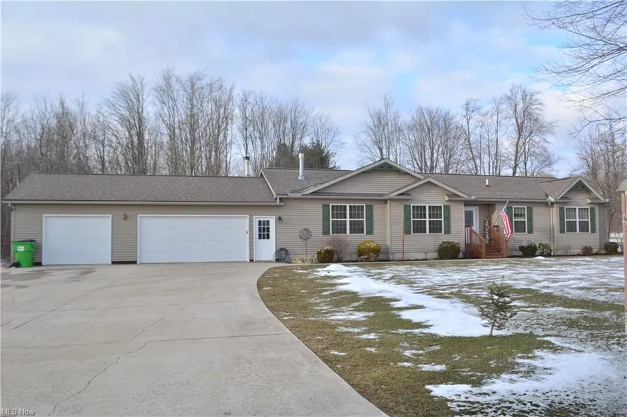 When location is the key, this 2+ acres newer ranch home is very close to both Pymatuning Lake and Lake Erie. If convenience is the key, it doesnt get much more convenient than a 3 car attached garage (with new OSB, insulation and lights), a Generac whole house generator, and also the laundry room and all bedrooms on the same floor. There are two main sources of heat, one being a new wood burner and the other a propane furnace. The kitchen has so much personality, with a breakfast bar and all appliances included. The living room has a beautiful gas fireplace. The basement is unfinished with tons of potential for additional living space or storage. Many recent updates to the home include new appliances, new garbage disposal, new wood burner, fresh paint throughout, freshly remodeled main bath and whole house water filter. There are plenty of parking spaces in the wide, paved driveway. The...