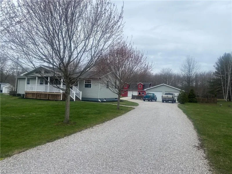 Almost Like Having 2 Exceptional Homes All Rolled Into One. Recently Remodeled Ranch All Cathedral Ceilings, loads Of Storage, finished Basement has Family Room with Electric Fireplace and large 3rd Bedroom. 2 Car Detached Garage. Plus a 40x30 Barn with finished rooms that make a perfect Man Cave...Also includes a Workshop Room. There is Free Gas and Propane Heat. City Water and well water. All situated on 2 Lots totaling just under 5 Acres with captivating Views of Woods and Wilderness. Close to Geneva on the Lake.