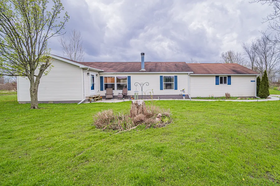 Country living at its best! Welcome to this Ranch home on almost 8 acres! Enjoy peace, tranquility as you sit on your large deck and listen to just nature. Plenty of land to have horses, chickens, pigs or anything you like. This home has 3 bedrooms and 2 full baths. The master bedroom has its very own ensuite bathroom with a huge whirlpool tub along with shower. The other 2 bedrooms are located on the other side of the home which ensures privacy, along with another full bath. The large living room is open to the kitchen and dining room area with a focal point being a nice wood fireplace. New high quality laminate flooring was just installed in the living room, dining and kitchen area. Laundry for your convenience is located right when you walk in from the attached oversized 2 car garage. A nice long winding cement sidewalk along with a patio area in front of the home was just put in that adds to the curb appeal and adds extra outdoor living space. A new pole barn was just built for extra storage but can be used for almost anything. There is also a pond on the property that you can look at out the window of your new addition that was put on the front of the home approx. 5 years ago. You can use it as a den, craft room or just your new home office.