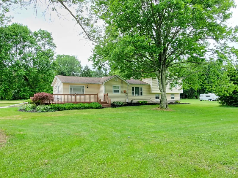 Welcome to this 3 bedroom, 2 full bath Split level home, located on over 2.5 acres. This home has so much to offer with a huge deck wrapped around half of the home and another deck directly steps off of the living room. This home has a huge backyard for all your outdoor fun with the kids, or entertaining. Want a master bedroom that is truly private? You have a separate floor in this home dedicated to the master bedroom and master en suite bathroom with also a sitting area. The master bedroom is huge with dual closets along with the ultimate privacy. There are also 2 separate living room areas if you would like one area for the kids and one for everyone else to gather. The flooring in the main living room is brand new. The laminate flooring is a beautiful mixture of colors of grey and light brown. The kitchen has plenty of oak cabinets with just steps away from your large dining room. The other 2 bedrooms are located on the main level; they will need some completed touches of paint and flooring from the new owner to make it fit their style. Overall this home is perfect for that growing family or anyone wanting to feel like they live in the country but are still very close to all those important amenities. Location is also approx 10 mins from Geneva on the Lake and close to so many wineries in the area. Don't miss out on what this home has to offer at this great price.
