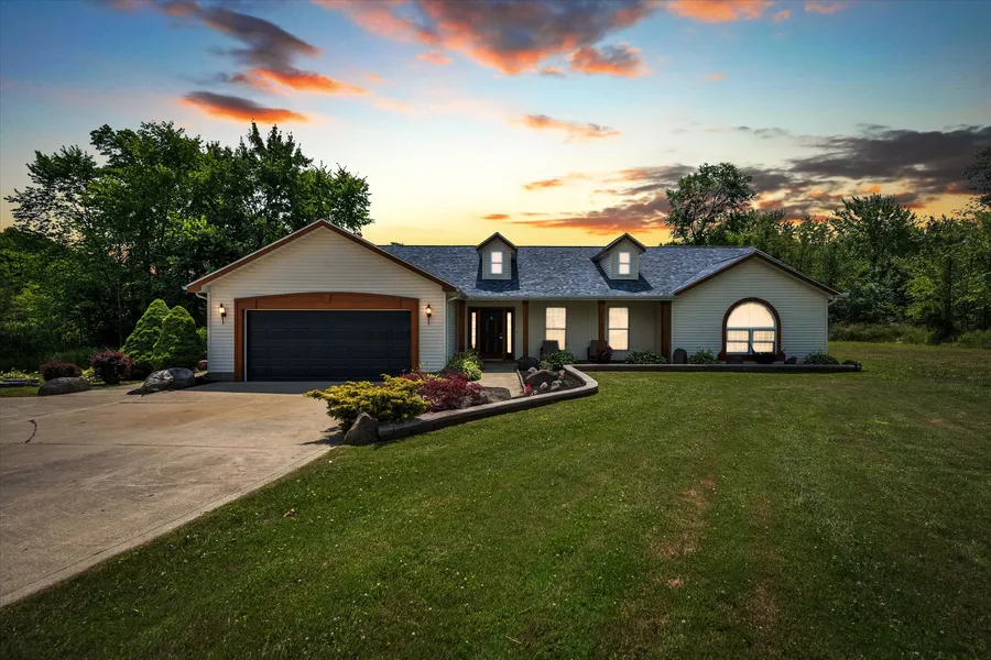 Modern, turn key ranch home on nearly 9 acres. Impeccable maintenance since being custom built in 1998 and a NEW ROOF this year. All appliances remain. Skylights, and a patio off the dining room with beautiful views and privacy. The home is set back over 500 feet from the road. Room for a pool and electric from prior pool still in back yard. Gorgeous mix of woods with hunting opportunity and Trumbull Meat Locker a few miles up 534. Master suite with his/her closets plus a private en suite master bath. The two ample sized bedrooms have a full bath and are on the other side of the home. OPEN concept living room, kitchen and bar stools/breakfast bar. New vinyl flooring installed in almost every room. Mudd room/laundry with front loading washer/dryer. Plus a short possible work commute as this property has a 2400 sq foot front of property shop with an office, bath/laundry, Paint room. 2nd fl...