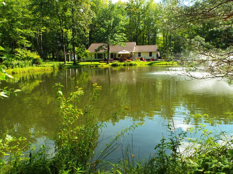Welcome to "Hummingbird Hideaway" - this home has such a lovely setting, even the hummingbirds love it! This well cared for ranch sits on a secluded 5 acre lot in an area of homes with acreage. You will love the privacy of the home, with a cleared section around the house and then woods surrounding you. There is a stocked pond water system that was new in 2016 and serviced in 2022. The open floor plan has plenty of windows to see the scenery all around, there are ceiling fans in every room. A large deck sits in the front with a new enclosed 3 season porch at the back. As a bonus, the home has a 20kw whole house generator. This home is a must see! Please see the attached list of improvements.