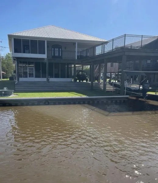 A sportsman's paradise with private boat lift! This custom built waterfront camp offers an open floor plan with 3 bedrooms and 2 1/2 baths, it is the perfect blend of comfort, functionality, and luxury - ideal for weekend getaways or full-time living. Located on the water with easy access to Belle River and Lake Verret. The living area has a vaulted ceiling and a large cypress built-in entertainment center. The kitchen area has custom cypress cabinet, large island, granite countertops with lots of counter space. The open concept design seamlessly blends the living, dining and kitchen area creating an inviting atmosphere perfect for entertaining guest or enjoying a quiet evening at home. The bedrooms are extra roomy with plenty of closet space. The master bedroom offers a large walk-in closet connected to the master bath which has a large marble walk-in shower and double marble vanity. You will enjoy walking out of the master bedroom into the screened-in porch that offers views of Belle River or enjoy the large open deck above the boat lift. The utility room has custom cabinets along with a marble countertop and space for a freezer. The home has a custom indoor elevator for easy access to the home. The lower level features 2 large storage sheds, a large outdoor screened in area ideal for hosting unforgettable gatherings with friends and family and plenty of parking. Whether you're looking for a weekend retreat or a forever camp, this property is built to impress and ready to make memories. (Property has a LOMA which is a huge bonus) All measurements are approximate and to be verified by a certified appraiser. Buyer to verify flood zone.