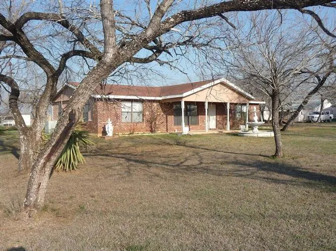 Owner or tenant can retreat to this oasis at the edge of town after a long days work. This home is cozy, with a split bedroom plan. Master bedroom and bath with tiled shower on one side and two bedrooms with Jack and Jill bath on the other. Natural light shines in on the nice, open and airy family room, dining, and breakfast bar areas. Easy to maintain, with ceramic flooring throughout. Even the indoor utility room is spacious. Two car oversized, side-entry garage connects to the house by covered breezeway. House sits about twenty feet behind office/retail building with three 26 X 20 units all with own bath, each has been ducted and vented for central a/c. Needs a/c unit and house needs gas meter. Refrigerator does not convey and garage doors need to be replaced. Property has highway access on west side, paved and gravel road on south and paved road runs behind property on east side. Old, nostalgic windmill stands atop water well behind garage. All are situated on ten lots totaling just over an acre with enough room for securing at least a couple of RV temporary housing units on north side. Nice opportunity for investor to experience several means of cash flow.