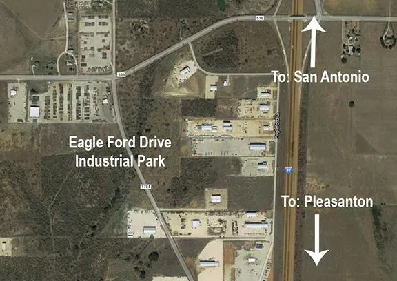 Oil closed at $53 per barrel Jan 12, 2017. Optimism abounds. Here's an ideal investment and/or 1031 exchange opportunity: For sale in growing industrial park, 1.7 acres, 800 SF office w/2,400 SF warehouse, same strong tenant past 10+/- years, just renewed another lease. NOI: $45,600 CAP: 12+/-% Asking: $369,000. Several value-add oppportunities with this one too. Call Dale 830-480-9955 for info, OM & CA. Now is the time to participate in Eagle Ford. Industrial Park is located on IH-37 w/great visibility IH-37 traffic. Located in the heart of South Texas Eagle Ford Shale play. Industrial Park is located on IH-37 w/great visibility IH-37 traffic. Located in the heart of South Texas Eagle Ford Shale play. Fast growing industrial park includes firms: ROCKWATER ENERGY SOLUTIONS, LUFKIN, FLOQUIP, EXPRESS, GRIZZLEY, JACK COWLEY, INNOSPEC & others. EZ ingress & egress on load-bearing road that access the property from FM 536 with IH-37 access.