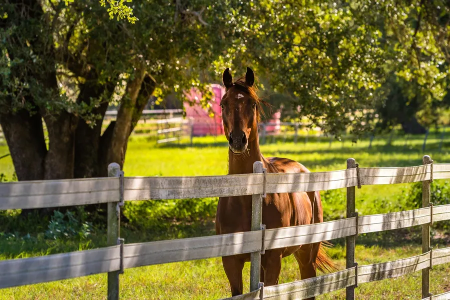 Upon entering the main residence you are greeted with majestic oaks, that gives one the feeling of being in a tree house. From the entrance and the 3 patio levels of the residence you can view many of the property attributes including; green pastures with white uniform fencing and a canopy of oak trees. The patios are finished with polished nickel railing to allow for maximum enjoyment of the view and serene setting.