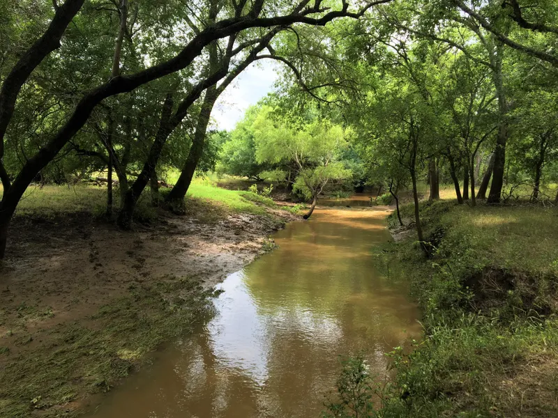 Terrain: The ranch has a good mixture of open area to brush with volunteer Coastal Bermuda common to the open areas. Large live oaks are numerous through out the entire ranch along with species such as Pecan and Cedar Elm along the river. Soils range from fine sand to a sandy loam. Majority of ranch has very little slope with exception of the river valley.