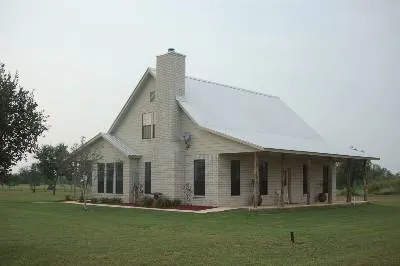 Neat 3 bedroom/2.5 bath, two story home. At 1,833 sq. feet, more or less, this quiet country home is a treat to see. Beautiful front and back porches, downstairs master bedroom, kitchen features custom wood cabinets and a propane stove top with a lot of counter space. Home has tile and carpet flooring, metal roof, and a cozy fireplace. Large metal building on property includes a two car garage and office.