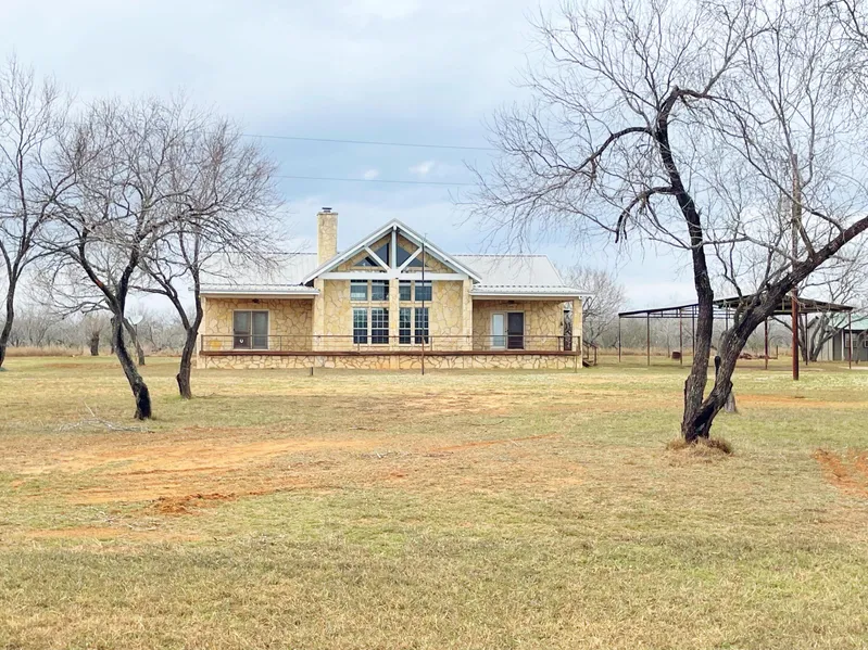 This ranch style rock home sits on 25 acres off of CR 337N just southeast of Charlotte, TX. The home is approximately 2,500 sq. ft. and has 3 bedrooms and 2 bathrooms and has a large utility room. There is also an additional 600 sq. ft. screened in back porch that was added on with a hot tub in it. Walking through the front door you enter a huge open living area that with 18 ceilings that is accented by a nice rock fireplace in the corner of the room.
