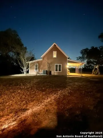 57.7 AC with 2/2 home and shop/garage. Property has wet weather creek (dry at this time). Home furnishings, blinds, and feeders to remain. Washer and dryer in shop. BBQ pit. Great country views. Deer, dove, turkey, etc. Easement drive to house. McCoy water and Karnes Electric are utility suppliers. New Septic to house. Get it while it's hot!