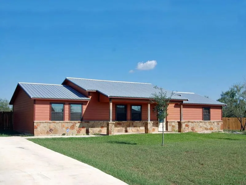 Conveniently located close to downtown Jourdanton and Jourdanton ISD, in the La Parita Subdivision, rests this quaint single story home. At approximately 1,740 SF, this 3 bedroom, 2 bath country charmer boasts a rock accented exterior, welcoming covered front porch, and metal roof. The inviting open floor plan displays high ceilings and a wonderful attention to detail. Evident throughout, are custom touches including beautifully dark stained cabinetry, a kitchen island bar with rock surround and tile countertops, as well as a Jacuzzi tub in the master bath. The spacious floor plan also features ceramic tile in the living, dining, kitchen, and bathrooms, as well as walk-in closets in all bedrooms. Completing this great residence is the level lot with large privacy fenced yard and a backyard deck perfect for entertaining.