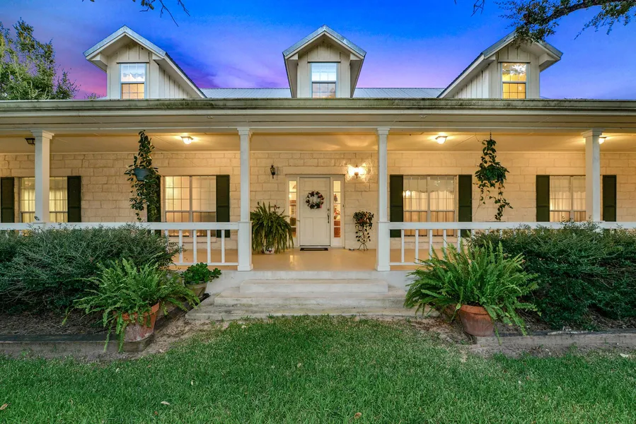 AMAZING! Hill Country style 2 story 4292 sq. ft. home, exterior entails large block limestone and metal roof, and 10 deep porches front and back, large barn with shop. Beautifully landscaped yard with wrought iron fencing. Enjoy the view from inside this 3B/3B/2 half bath/2 car garage home with study, separate dining, fireplace in large den, and breakfast area in the large kitchen, laundry room, large walk-in closets, and walk-in attic storage. 2,520 sq. ft. Barn with bedroom and bath in it and 720 sq. covered parking on each side. Many, many more amenities you will have to see to believe.