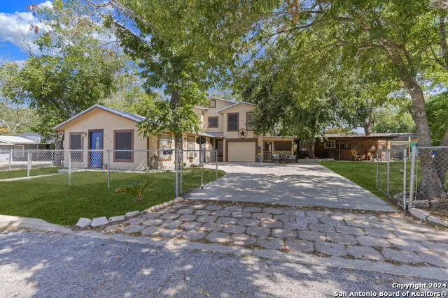 Discover the allure of this renovated 3-bedroom, 2-bathroom gem nestled on an expansive joined lot at 523 Dallas St, Pleasanton, Texas. Originally built in 1950, this home masterfully blends classic charm with modern comforts. The heart of the home features spacious areas perfect for entertaining, seamlessly connecting to an updated kitchen. Enjoy the Texas sun with an above-ground pool and a well-designed deck, perfect for summer gatherings. Additional outdoor amenities include a screened-in patio, a versatile detached workshop, a storage shed with a covered patio, and a charming chicken coop, all set within beautifully maintained grounds. The property boasts a newly paved driveway, enhancing its curb appeal and accessibility. This delightful residence is an idyllic sanctuary for those seeking a tranquil lifestyle with all the conveniences of modern living, making it a must-see in Pleas...
