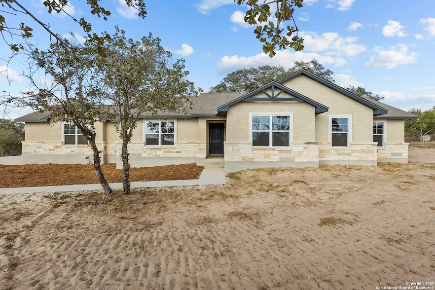 Explore the pinnacle of contemporary living in this new construction home by DAH Builders in Poteet, TX. Situated on a generous 1-acre lot, this residence showcases a luxurious primary bedroom with an ensuite bath, including a walk-in shower and a spacious walk-in closet. The open-concept living area is crafted for seamless entertaining, highlighting energy-efficient appliances, exquisite granite countertops, and chic shaker-style cabinets in the kitchen. Experience the tranquility of a rural setting while still being just 30 minutes from downtown San Antonio. (1 acre lot on a cul-de-sac)